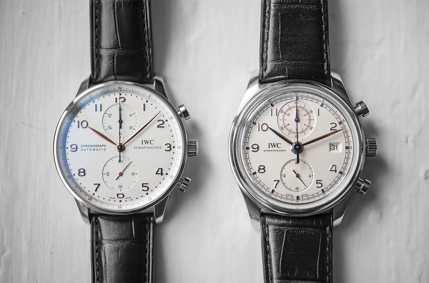 Taken on its own merits, the IWC Portuguese Chronograph Classic is a beautiful watch that hits all the details just as it should. The case has been reengineered and all the components, including the crown, pushers, and crystal, work together harmoniously, and the sportier dial design includes a date window, more technical looking subregisters, and a railroad minutes track. Also, importantly, the Portuguese Chronograph Classic houses an upscale in-house movement with an upscale price to match.